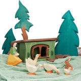 Ostheimer rabbit hutch is the perfect home for your small Ostheimer animals. It could be the home of rabbits, geese, chickens or any small animals. It has soft curves and finished in gentle bown and soft moss green. The hutch has a door that swings open and easily removable roof for play.