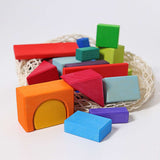 Grimm's Spiel and Holz wooden blocks are made with children in mind, so they are finished without "high gloss" to make building more satisfying.  Every block is hand-sanded to ensure there are no rough or sharp edges and are made using eco timbers and natural vegetable dyes.
