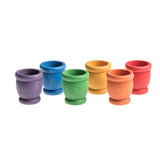 The mates are painted with 6 different colours of the rainbow, to match, classify, sort, pile up. Undefined forms favor divergent thinking in all its forms, giving the possibility to the child to make their own creations.