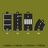 This great expansion set contains seven road parts : four curves and three straight parts. The waytoplay road parts are printed on both sides. Put them between or beside your waytoplay roads for even more fun. You expand your waytoplay motorway with seven road parts or combine two of these sets to make a full circle.