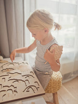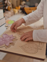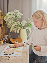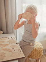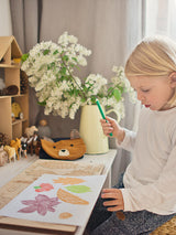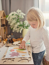 Become an expert in forest education, discover leafs and seeds of different trees, learn their names, make a stamp from and add some autumn colors.