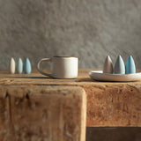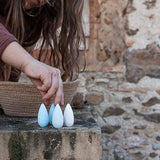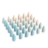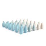 This set of little snowflakes is in varying shades of pale pastel blue and white. Handmade from sustainably sourced wood and finished with non-toxic colours. Height: 4 cm