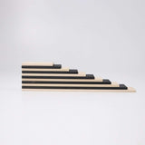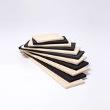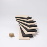 Grimm's building boards open up a myriad of creative play opportunities and comes with 11 lime wood pieces in monochrome colours and varying sizes. Use them as a creative puzzle to be played on the floor, or in combination with our 12 piece rainbows, tunnels, semicircles or other building blocks for new construction projects.