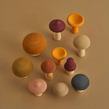 This beautiful set of mushrooms will transform any small world play. Each piece has been handcrafted to echo the different types of mushrooms. Perfect as a heirloom piece to add to your child's toy collection.