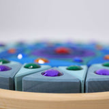 The Grimm’s Sparkling Mandala Small is a versatile block set and puzzle, with little acrylic jewels on set upon many of the wooden pieces. This set invites you to create, let your imagination lead, there are endless creative possibilities, patterns, mandalas and picture building, this set will inspire your creativity. this coloured building set combines seamlessly with all other large building block sets.