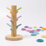 Funny sorting tree with 12 pastel dowels from Grimm's that can be used for sorting, counting or tidying.
