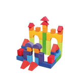 Grimm's Spiel and Holz wooden blocks are made with children in mind, so they are finished without "high gloss" to make building more satisfying.  Every block is hand-sanded to ensure there are no rough or sharp edges and are made using eco timbers and natural vegetable dyes.