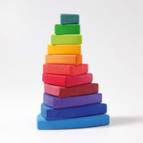 This supersized rainbow stacker from Grimm's comes with 11 triangular discs in stunning rainbow colours.