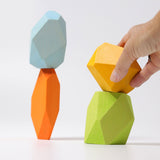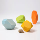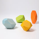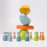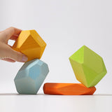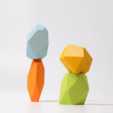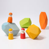 This set of four wooden gems from Grimm's can be stacked together in various ways using the different sides to create leaning towers and wild landscapes. Children will enjoy working out how the shapes can stack together and understanding the fundamentals of balance. They can be combined with the pebbles for a greater challenge!