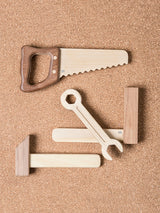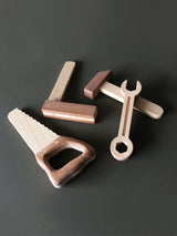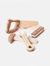 Wonderfully detailed in contrasting Sapele teak and rubberwood, this set of four tools is perfectly designed to balance beautifully in young builders' and makers' hands, encouraging manual dexterity. 4 wooden tools presented in a box.