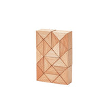 Twist and turn these blocks to create serpentine shapes and geometric patterns. Snake Blocks are composed of 24 wooden triangles with an elastic band throughout.