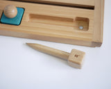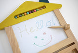 Oekaki means ‘drawing board’ in Japanese. This beautiful magic board allows you to draw with the magnet pen, erase and draw again endless times onto a 4 coloured background. Pull the little dog along to erase and use the circle, square or triangle shaped magnets to enhance your drawing skills. Use the mini abacus to count or tally your score in a game of noughts and crosses!