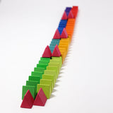 Grimm's Spiel and Holz wooden blocks are made with children in mind, so they are finished without "high gloss" to make building more satisfying.  Every block is hand-sanded to ensure there are no rough or sharp edges and are made using eco timbers and natural vegetable dyes.