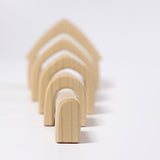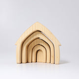 Beautiful nesting houses from Grimm’s Toys. Build, stack and create with this natural wooden house set from Grimm’s. It comprises 5 houses that can be nestled like a puzzle; stacked up or split and used with other wooden building blocks.