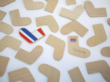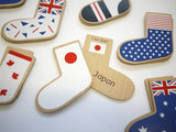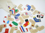 Step to the World is a wooden memory game. Try to find the matching pairs of socks.