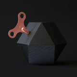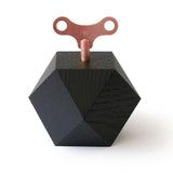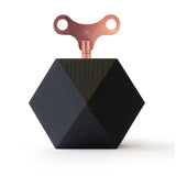 82 x 82 x 82mm; solid oak wood from regional forestry, black silk matt lacquered, visible wood grain; 18-note mechanical music movement; key brass vintage rose; in high-quality gift box. Made in Germany.