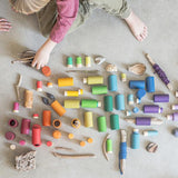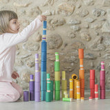 The Grapat Lola set is a rainbow collection of Lola figures and tubes, perfect for open ended play. The 72 pieces allows for a variety of uses such as construction, creation of imaginary worlds, colour sorting, categorising or a game or ‘hide-and-seek’.
