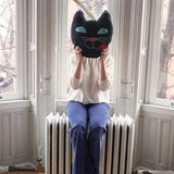 Every cat lover will love this soft version in baby alpaca. Approximately 13" wide x 16" high. 100% Baby Alpaca outer with polyfill Our knits are made in Bolivia by a self-managed community of indigenous women. In line with fair trade principles, our artisans are paid a living wage, which enables them to afford healthcare and education for their children. This product is made from soft, luxurious baby alpaca wool which is hypoallergenic and eco-friendly. Spot clean with a mild detergent.