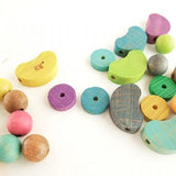 A super-chic denim pochette, bracelet and design-your-own necklace set. gg* classic colour schemed wooden beans and beads included. Wear a sweet elasticated bracelet with your created necklace and carry your other trinkets in the little "joli" bag.