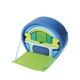 This cute portable wooden doll house by Grimm’s can be packed up and taken with you wherever you go. The Grimm’s portable home comes with 14 pieces of nesting furniture including chairs and table, kitchen and curved beds, that fit inside each other like a puzzle. It all packs up into a handy felt cover with a string handle for carrying.
