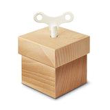82 x 82 x 82mm; solid beech wood from regional forestry, waxed; 18-note mechanical music movement; key brass white; foot rim; in high-quality gift box. Made in Germany.