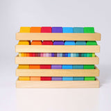 The Grimm's wooden building set, forms and colours is made up of 70 pieces using 7 colour variations and 5 different forms. Each of the various forms comes in its own stacking frame. Explore geometry with this beautiful building set or just build.